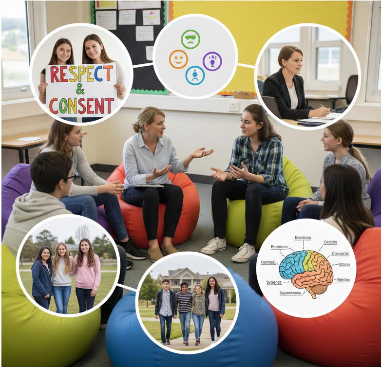 Sexuality education also helps to prepare for and manage physical and emotional changes as teenagers grow up, including during puberty and adolescence, while teaching them about respect, consent and where to go if they need help. This in turn reduces risks of violence, exploitation and abuse (World Health Organisation, 2023).