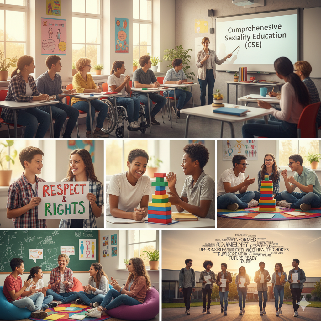 “Comprehensive sexuality education (CSE) is an age-appropriate and culturally relevant process of teaching and learning about the cognitive, emotional, physical, and social aspects of sexuality. CSE aims to ensure that young people receive a comprehensive, life-skills-based education that equips them with the knowledge and skills to make conscious, healthy, and respectful choices about relationships and sexuality. CSE includes education on human rights, human sexuality, gender equality, puberty, relationships, and sexual and reproductive health”