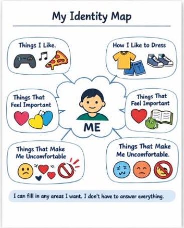 Create a personal identity map with optional sections: